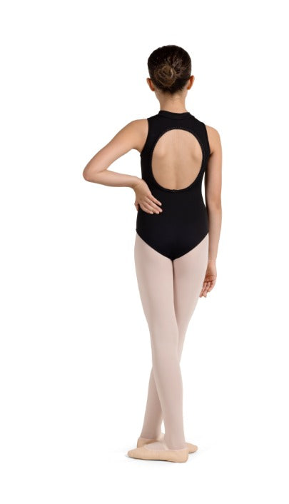 Girls Mirella Miami Zip Front Leotard features a high neck with a zip front closure and an open back detail. Part of our Mirella Miami Collection; this collection of super-cute dancewear features braided trims, eye-catching shades, and shiny gold details for a touch of show-stopping sparkle.