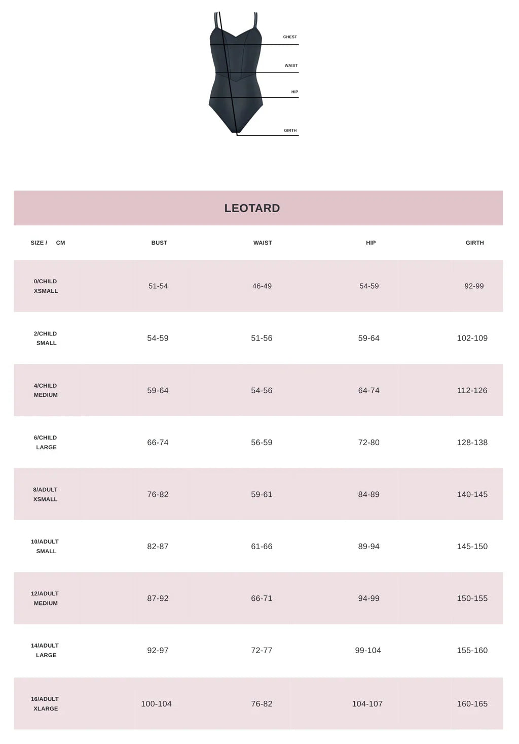 DANSE DE PARIS sizes are very fitted and petite - Just how dancers like it!