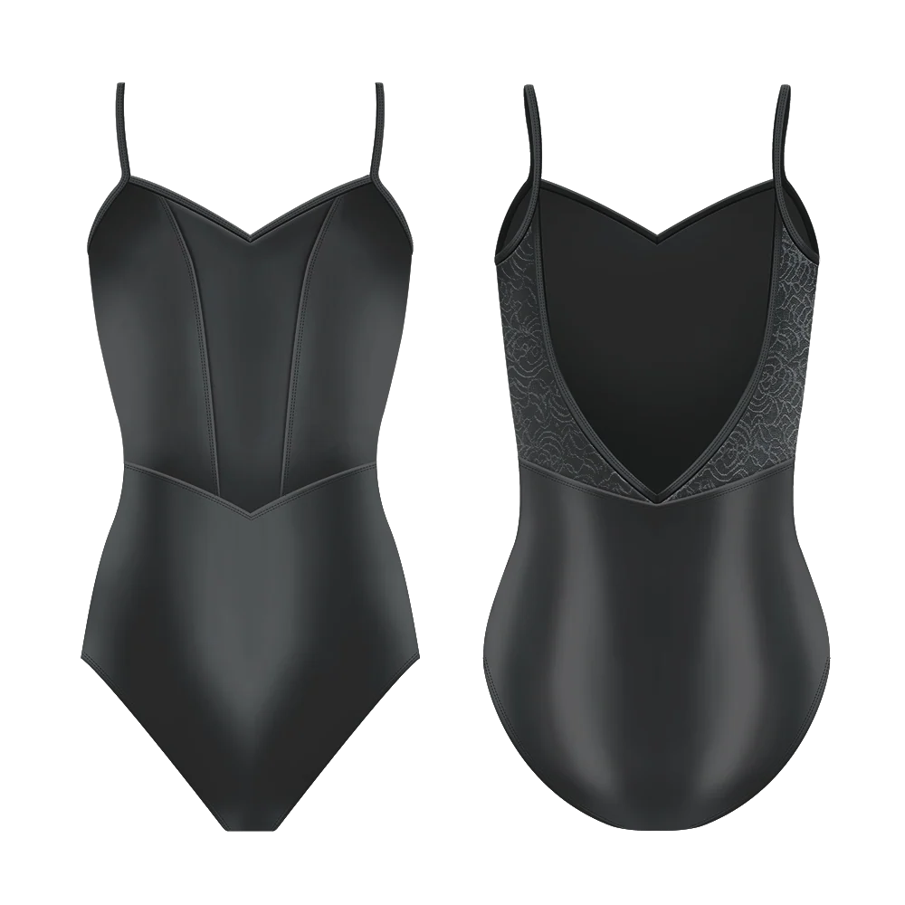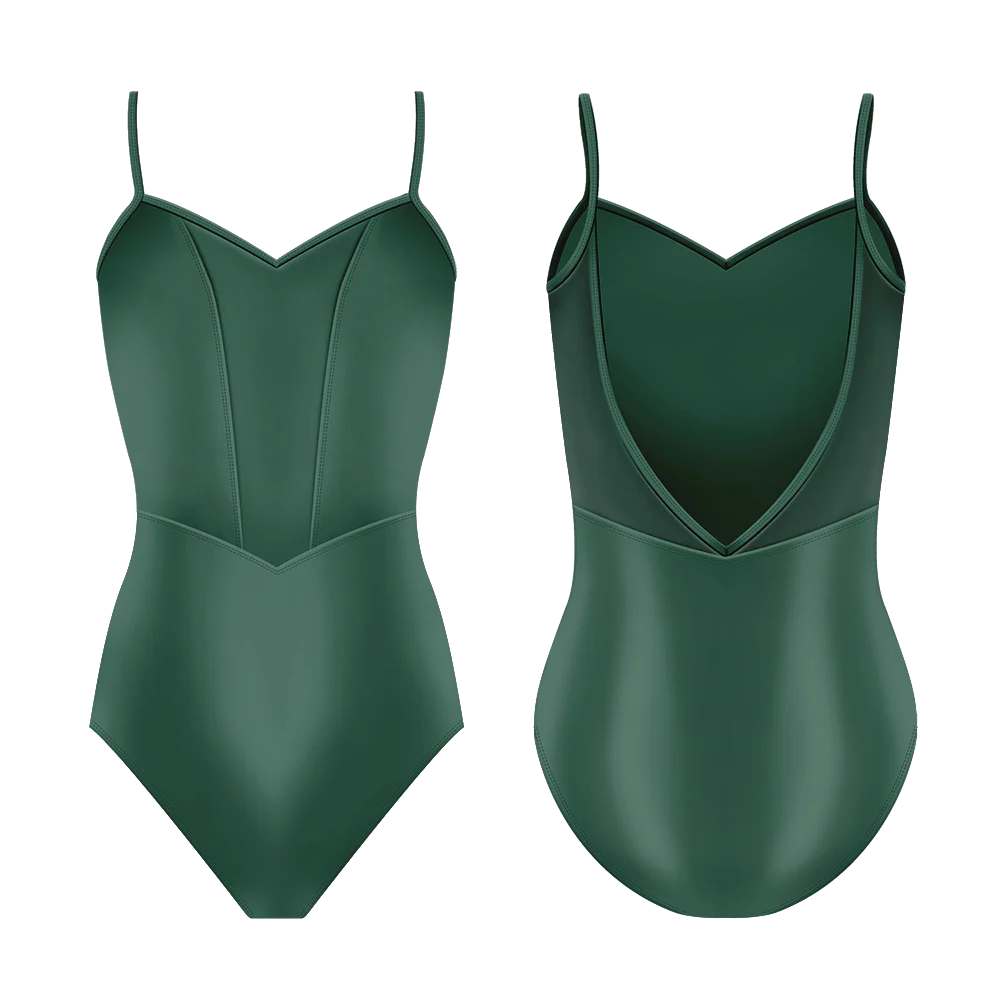 - Mid- section V draws the line of the leotard in, focusing on the narrowest part of the waist