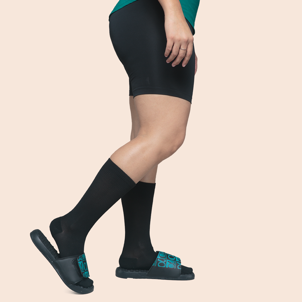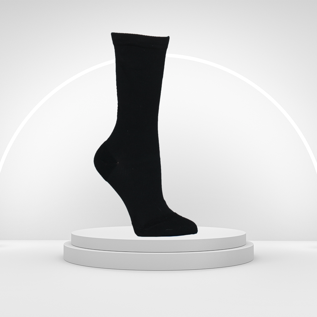 Your new favorite running or recovery compression sock will make your feet feel like they are on clouds! The Infinite hits mid-calf has graduated compression up the calf giving the calves a snug hug. If you suffer from shin splints or calf aches you will fall in love! They stay up and you will love how long the high-quality compression lasts. They of course have the same effective arch and ankle support that all our socks provide. Our toe box is seamless and provides plenty of room for wide feet. Additionally, our knit-in energy absorption padding is in the heel AND the ball of the foot. Wear for exercise, recovery, travel, and say good-bye to swollen feet and ankles!