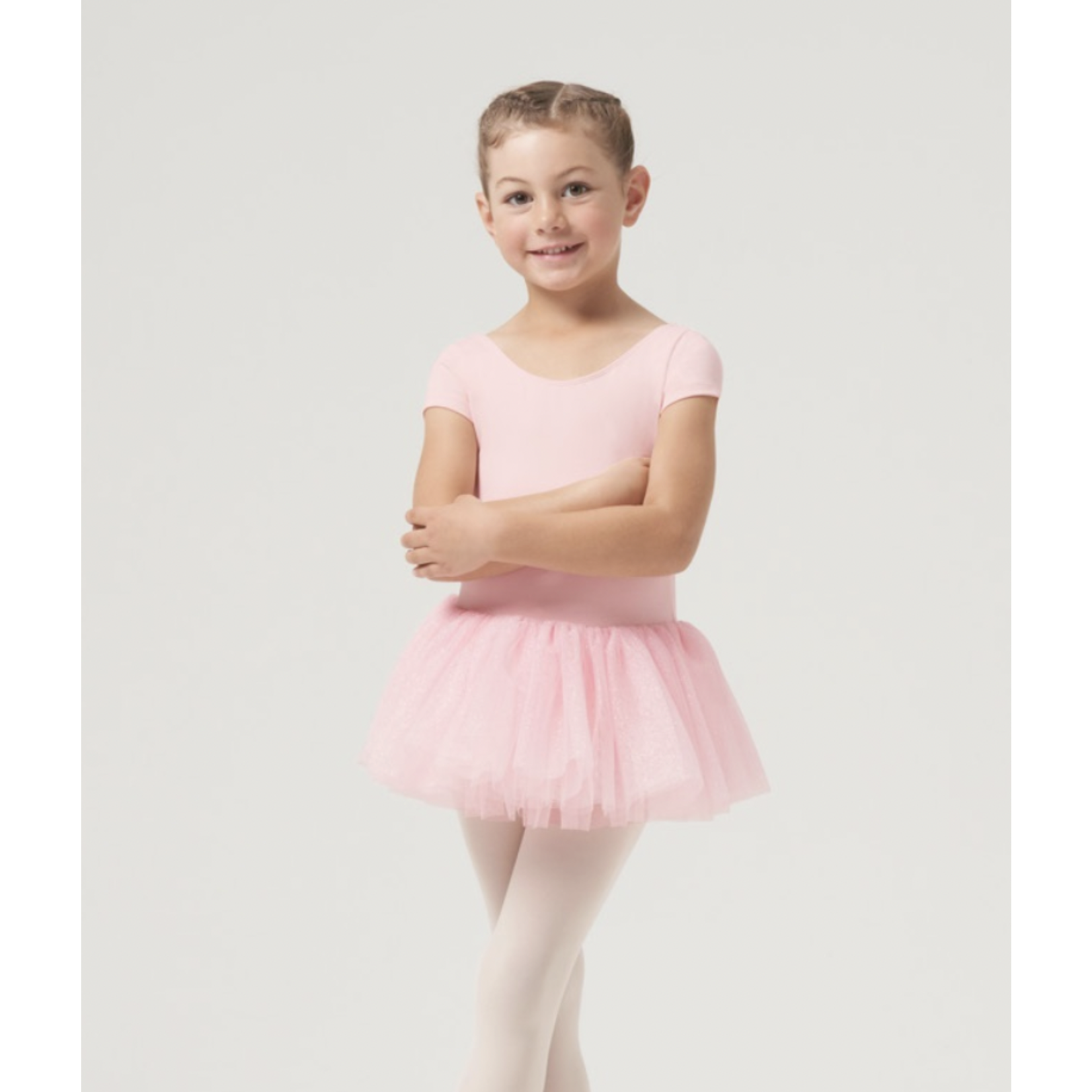 Clara Cap Sleeve Glitter Tutu Dress CL1022 from Bloch is the cutest spin on a classic design. This cap sleeve leotard features a built in tulle skirt with a glitter overlay for comfort and ease, plus a scoop neck and back for a simple yet stunning design. This leotard is perfect for your little dancers debut!